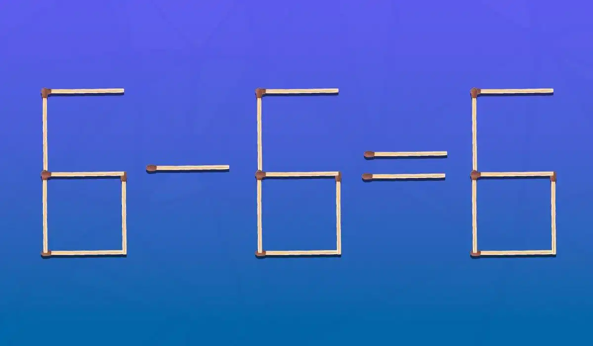 Това е класически пъзел със запалки, където трябва да преместите само една клечка, за да направите грешното равенство 6-6=6 математически вярно. Ключът е да погледнете цифрите не като статични символи, а като форми, които могат да се променят.