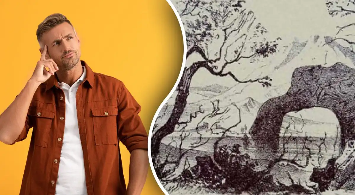 Този живописен пейзаж крие хитра оптична илюзия: силует на човек, слит с дърветата. За да го откриете, трябва да промените фокуса на зрението си и да търсите не обекти, а негативни пространства и контури.