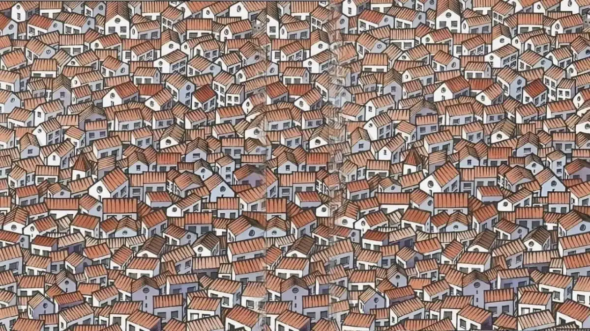 Погледнете изображението по-долу. Не бързайте веднага да търсите отговора. Отделете си целите 30 секунди, за да сканирате всяка част от картината. Понякога мозъкът ни възприема това, което очаква да види – къщи. Вашата цел е да преодолеете това и да забележите аномалията.