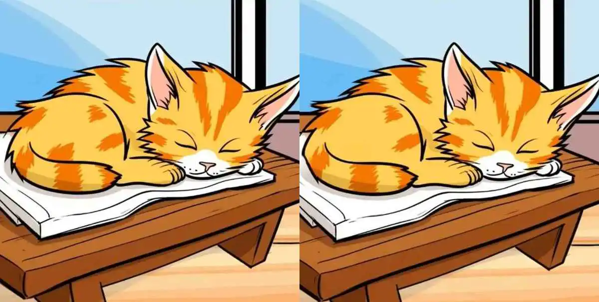Този класически тест за внимание ви предизвиква да откриете три малки разлики между две почти еднакви снимки на котка за само 12 секунди. Уловката е в детайлите, които умишлено са направени почти невидими на пръв поглед.