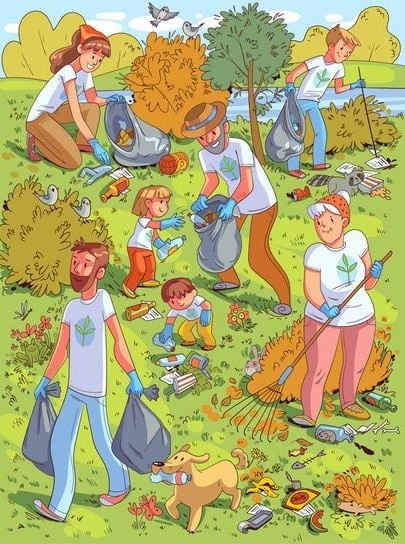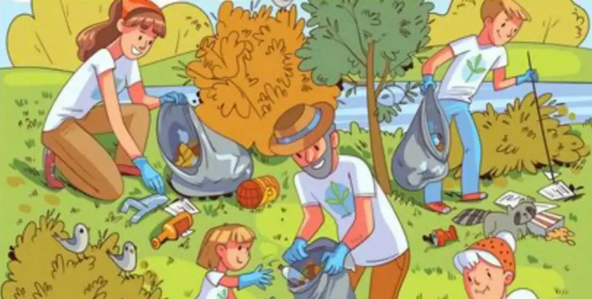 Представете си един слънчев ден в парка. Група ентусиасти, главно деца с родителите си, са се събрали за еко-акция и почистват боклуци. Сцената е пълна с движение и детайли – хора, торбички, дори птички и любопитен енот, който наблюдава отстрани. Но сред цялата тази активност, едно създание остава неподвижно и почти неразличимо от заобикалящата го среда. Вашата задача е да го намерите за по-малко от 7 секунди. Готови ли сте да изпитате вниманието и скоростта на възприятието си?