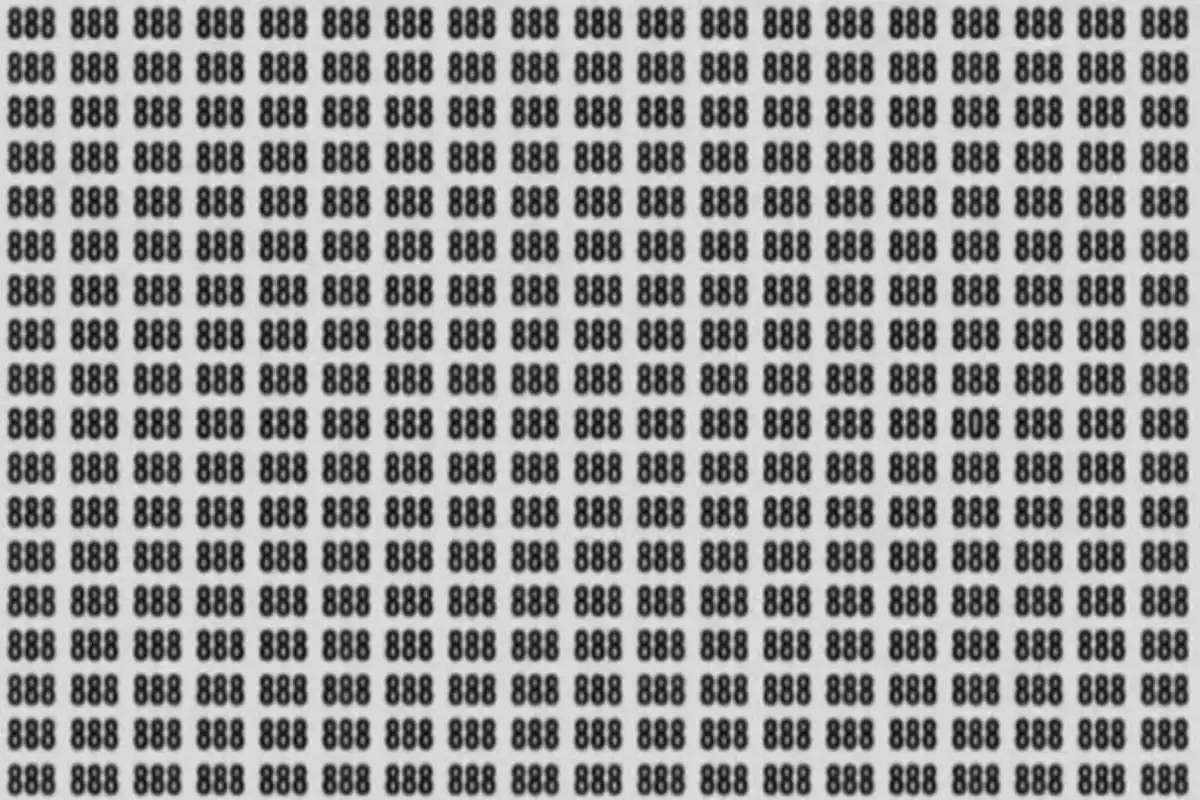 В тази оптична илюзия се търси числото 808, скрито сред поредица от осмици 888. Ключът е да гледате не само цифрите, но и пространствата между тях – понякога отговорът се крие в негативното пространство или в комбинация от форми.