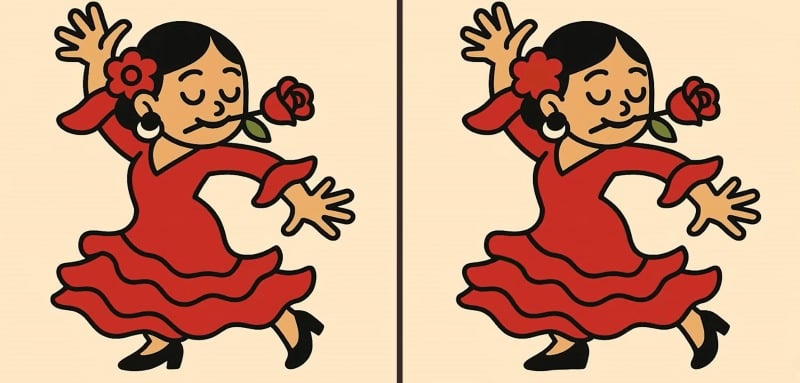 Предстои ви бързо предизвикателство за наблюдателност: две снимки на танцуващо момиче, които изглеждат идентични, но се крият три малки разлики. Имате само 43 секунди, за да ги откриете всички. Ключът е да сканирате изображението системно, а не хаотично.