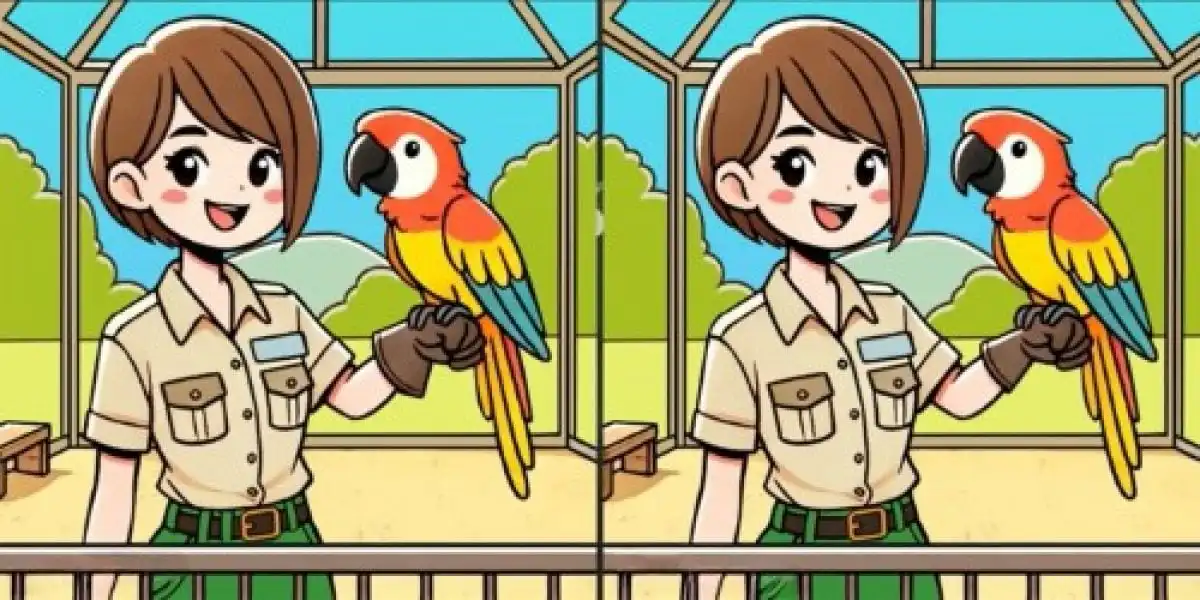 Този визуален пъзел с момиче и папагал изглежда просто, но за 17 секунди трябва да откриете три фини разлики. Уловката често е в детайли, които мозъкът пропуска на пръв поглед – цветът на дреха, формата на предмет или дори изражението на лице.