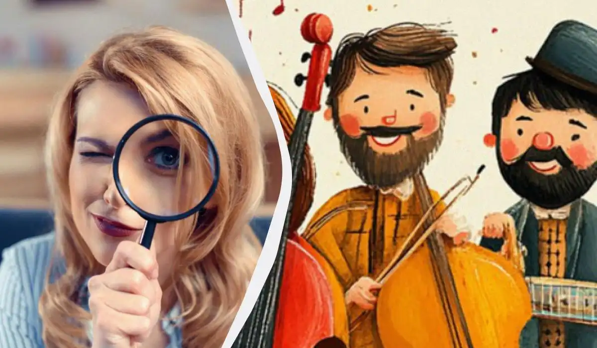 – Мини-пъзел 2: Вижте отново първата голяма снимка за 3 секунди. Колко музиканти носят очила? (Това изисква бързо преброяване и памет).