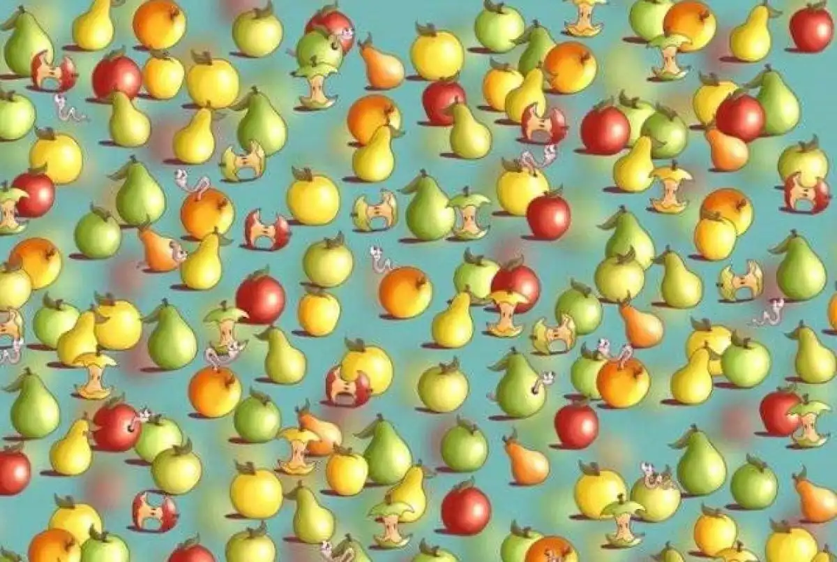 Това е класически тест за внимателност и бързо възприятие: сред море от червени ябълки и зелени круши се е промъкнал един-единствен жълт лимон. Вашата задача е да го откриете за рекордно време, като се съсредоточите върху цветовия контраст и формата.