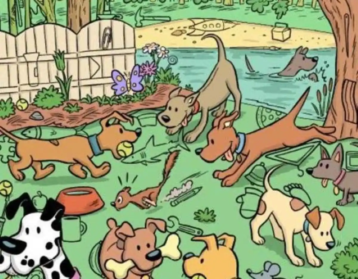 Представете си, че сте в парка. Група кучета от различни породи се веселят и играят на тревата. Има и други обитатели – катерица, мишка. Но сред този хаотичен и живописен хаос се е изгубил един много нужен предмет: магнит. Картинката е наситена с детайли, цветове и форми, което прави магнита почти невидим на пръв поглед. Това е класически тест за внимателност и скорост на възприятие. Готови ли сте да проверите зрението и концентрацията си? Започнете отброяването!