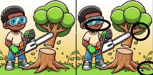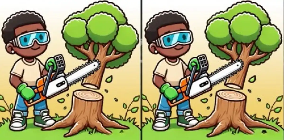 Този пъзел проверява остротата на зрението и скоростта на възприятие: в две на пръв поглед еднакви снимки на дървосекач са скрити три разлики, които трябва да откриете за по-малко от 21 секунди. Ключът е да сканирате изображението системно, а не хаотично.