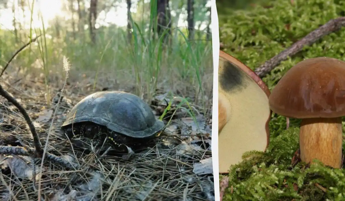 Първа подсказка: Забравете за костенурката за момент. Тя е „примамка“. Помислете логично – къде в една гора би могла да расте гъба? Кои са типичните места?