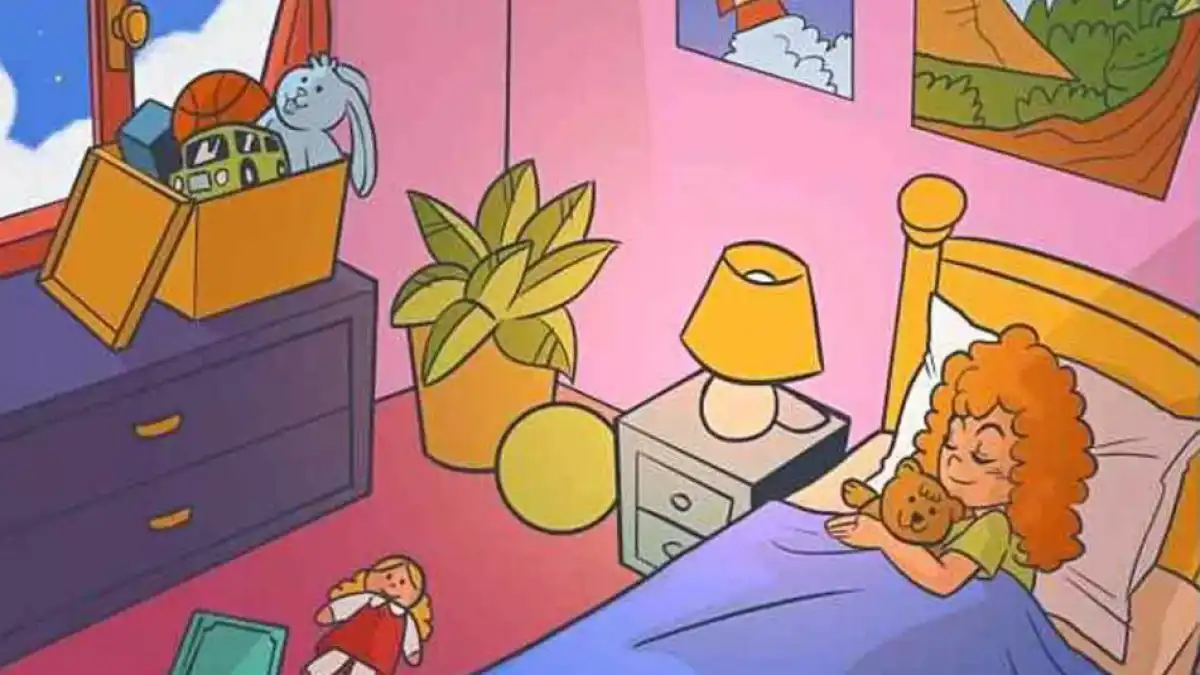 Този визуален пъзел поставя зрението и вниманието ви на изпитание: в идилична детска стая, където момиченцето спи мирно, се крие зелена жаба. Вашата задача е да я откриете за 15 секунди. Ключът е да не търсите очевидното, а да сканирате целия кадър, включително местата, които мозъкът ви може да пропусне като фон.
