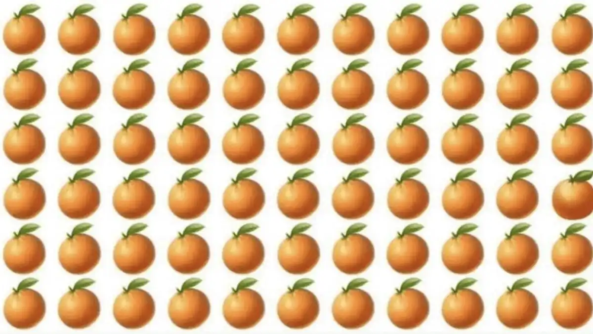 Този пъзел проверява вниманието и скоростта на възприятие: сред множеството еднакви портокали трябва да откриете един-единствен, който се различава по ориентация. Ключът е в детайла, който убягва на пръв поглед.