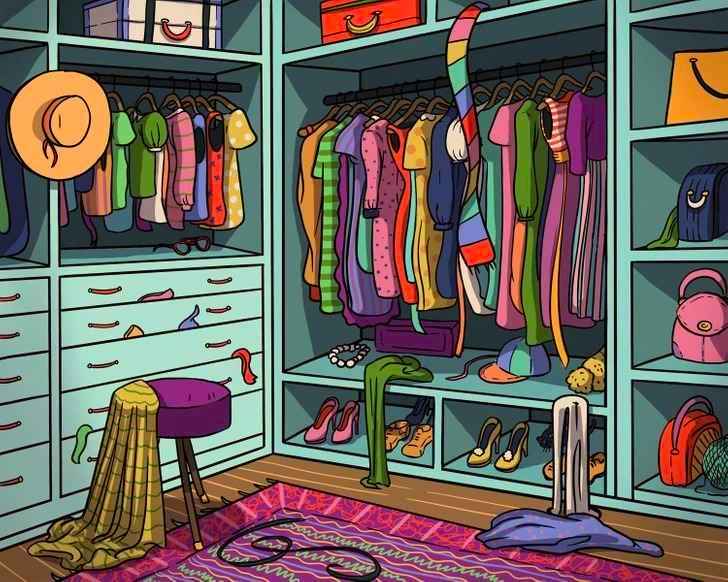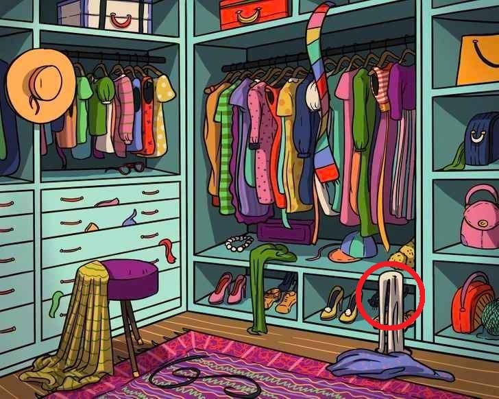 Втора подсказка: Погледнете долната част на гардероба. Фокусът не е на най-запълнените с детайли рафтове.