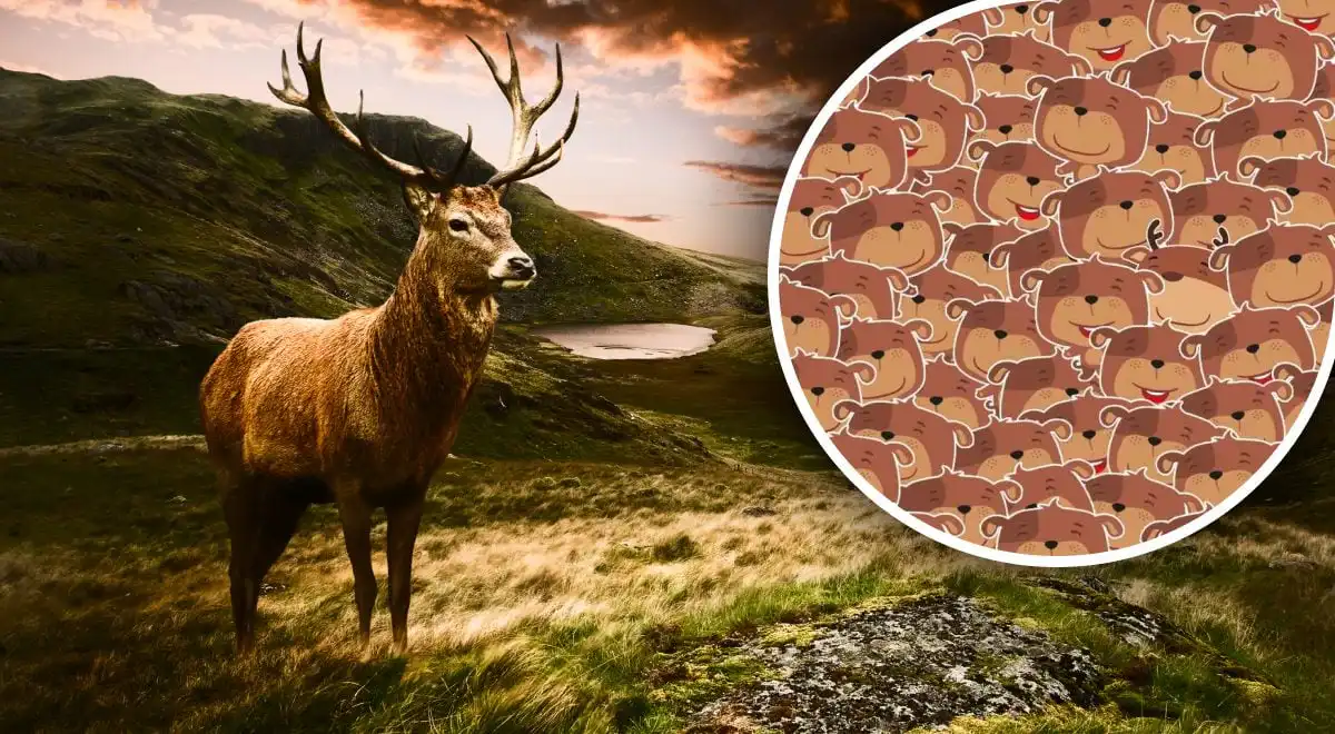 Сред шумната компания от мечки се е промъкнал един необичаен гост – елен. Вашата задача е да го забележите за по-малко от 4 секунди, като се съсредоточите върху детайлите, които се различават от мечешките силуети. Ключът е в вниманието към формите, а не само към цветовете.