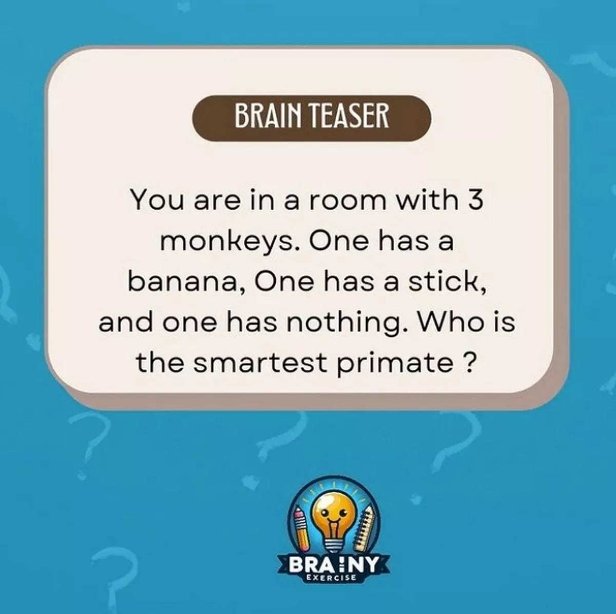 Въпросът не пита „Коя от трите маймуни е най-интелигентна?“. Той пита „Кой е най-интелигентният примат?“. Биологическият термин примат (Primates) включва не само маймуни, горили и лемури, но и хората. Човекът (Homo sapiens) е част от разред Примати. Следователно, в контекста на загадката, ти, човекът, който четеш и се опитваш да решиш задачата, си също примат. И тъй като човешкият интелект е несравнимо по-развит от този на всяка маймуна, най-интелигентният примат в тази ситуация си ти самият. Загадката разчита на промяна в перспективата и изисква да включиш себе си в уравнението.