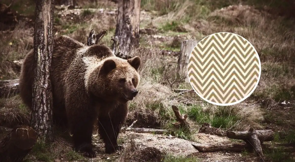 В тази оптична илюзия животно (мечка) е умело замаскирано сред шарки и контури на дървета. Ключът е да промените фокуса си и да търсите не отделни детайли, а цялостната форма, която се появява, когато погледнете изображението по различен начин.