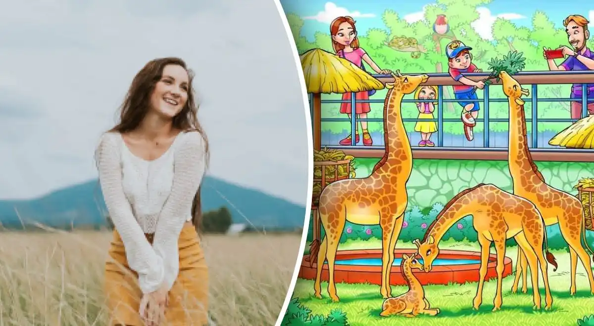 Това е класически тест за внимание и бързо възприятие: в сцена от зоопарк с жирафи и хора, маймуна се е скрила на видно място. Уловката е в това, че мозъкът ви се фокусира върху големите обекти, пропускайки детайла, който не очаква да види точно там.