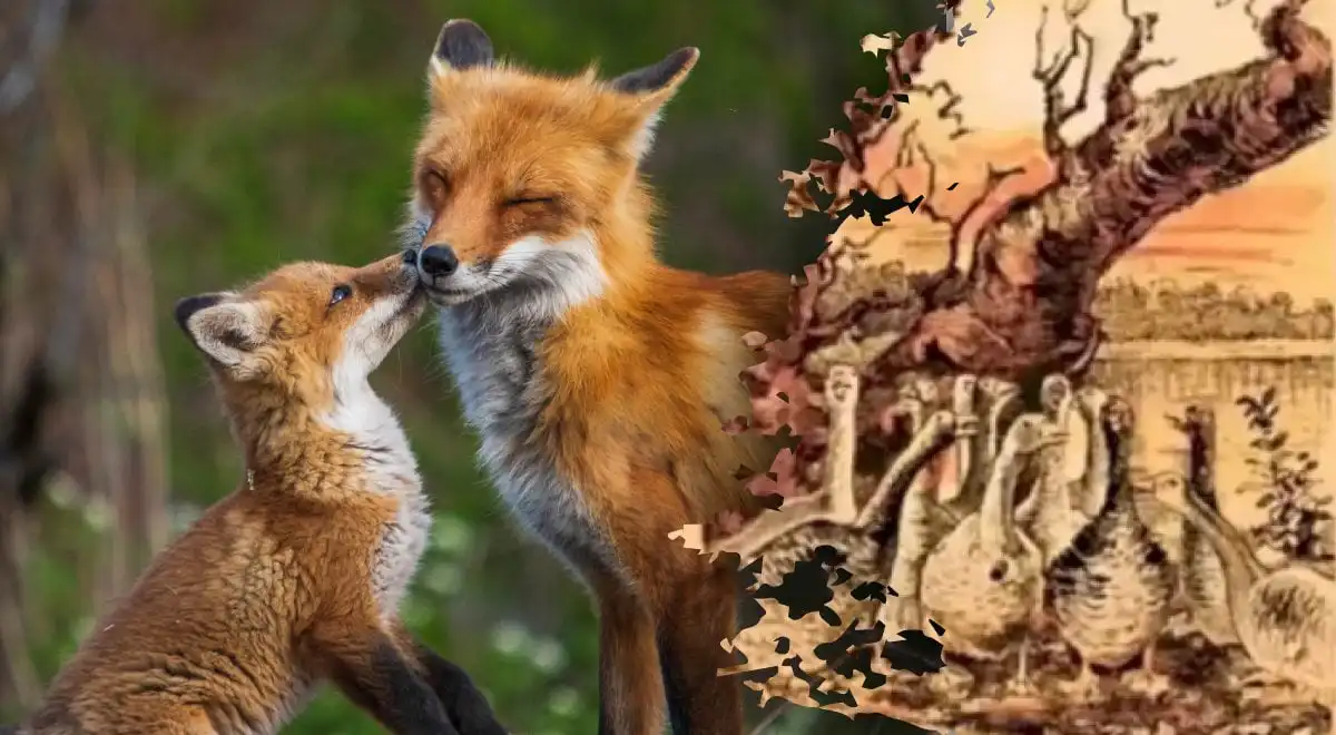 Това е класическа визуална загадка, която тества вашето внимание и способност за разпознаване на форми. Лисицата не е нарисувана като отделна фигура, а се крие в отрицателното пространство и очертанията на дърветата. Ключът е да погледнете картината не като съвкупност от обекти, а като цялостна текстура.