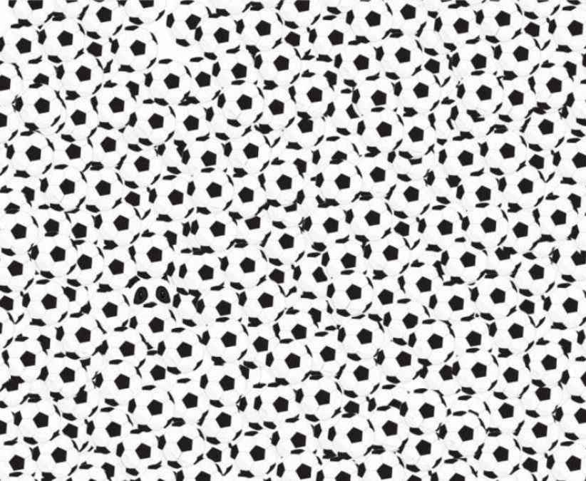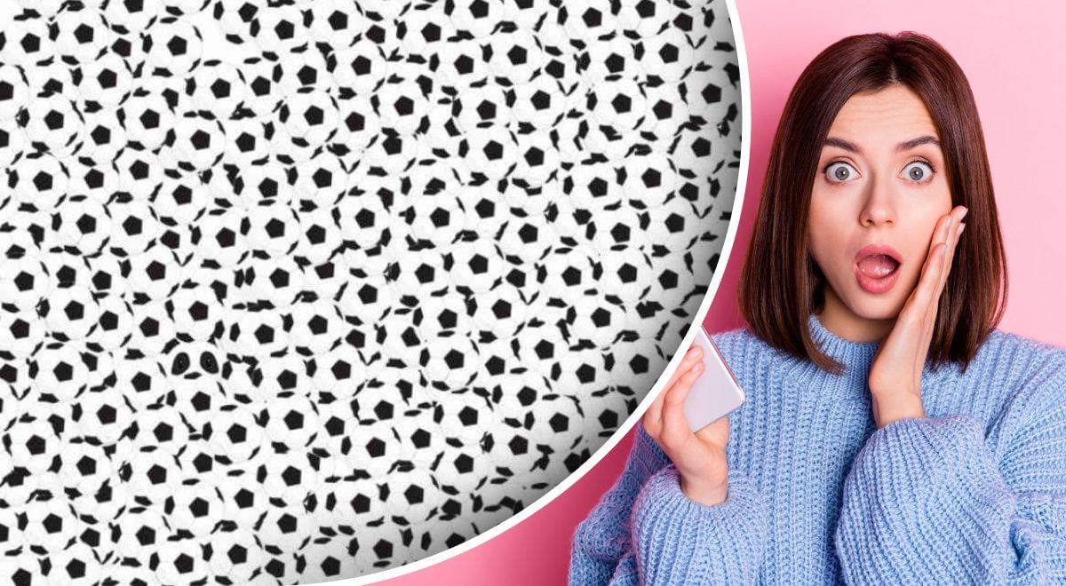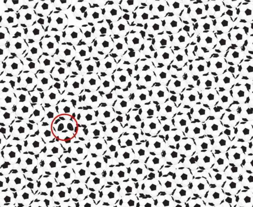 Сред морето от черно-бели футболни топки се крие една малка панда. Вашата задача е да я откриете за рекордно време. Ключът е да търсите не цялата форма, а детайл, който се различава от монотонния модел.