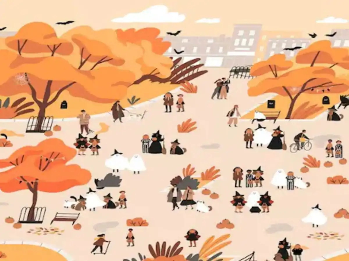 Този пъзел е истинско предизвикателство за вниманието: в идилична есенна сцена с разхождащи се хора се крият пет котки. Задачата е да ги откриете за 30 секунди. Ключът е да сканирате картината системно, а не хаотично, като обърнете специално внимание на контрастите и силуетите.