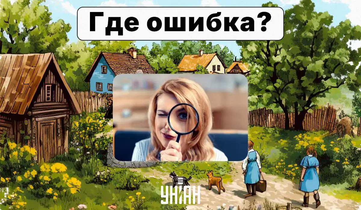 Решението: Грешката, която нарушава логиката на сцената, е коминът, поставен върху кладенеца. Кладенецът е извор за вода, конструкция, която няма нужда от комин, тъй като в него не се пали огън. Комините се използват за отвеждане на дим от печки, камини или котли, които обикновено са в сгради. Поставянето на комин, от който даже излиза дим, върху отворен кладенец е забавна и очевидна несъобразеност, която тества способността ни да забелязваме нелогични комбинации в позната обстановка.