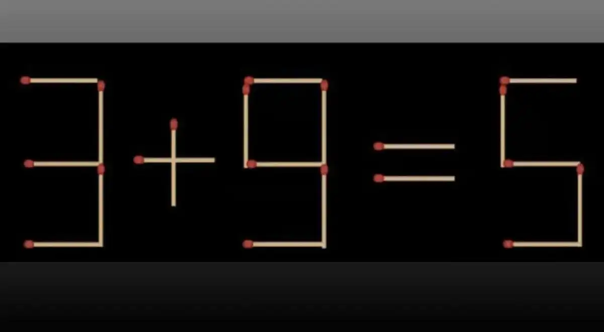 Това е класически пъзел със запалки, където уравнението 5 + 7 = 9 е невярно. Вашата задача е да го поправите, премествайки само една клечка. Ключът е да мислите нестандартно за формите на цифрите, а не само за аритметиката.