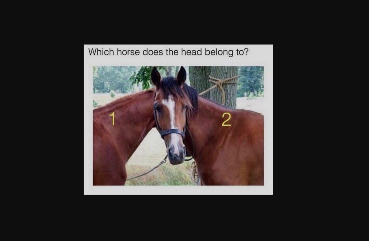 Тази оптична илюзия с два коня те кара да се замислиш кой от тях гледа право към теб. Уловката е в детайла, който мозъкът ти може да пропусне на пръв поглед – внимателно разгледай гривите и ориентацията на главите.