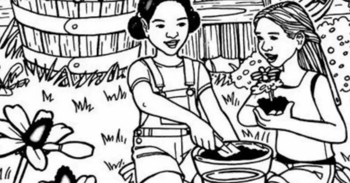 Този визуален пъзел изисква орлово зрение и внимание към детайла: сред идилична градина с две момичета, пръстенът е хитро скрит на неочаквано място. Ключът е да не се подвеждате от очевидните форми и да сканирате изображението системно.