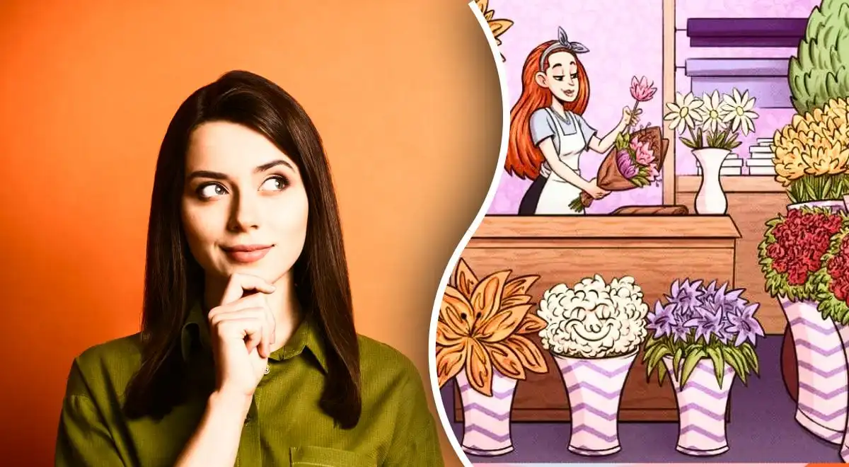 Застанете пред тази картина на цветарски магазин. На пръв поглед това е просто красива композиция от ярки цветя и зелени листа. Но има нещо повече. Художникът (или природата, подредена по специфичен начин) е скрил три човешки лица директно в дизайна. Вашата задача е да ги разкриете за по-малко от шест секунди. Това не е просто тест за зрение; то проверява вашата способност за промяна на перспективата и разпознаване на образци там, където мозъкът първоначално вижда хаос. Готови ли сте да проверите вниманието си?