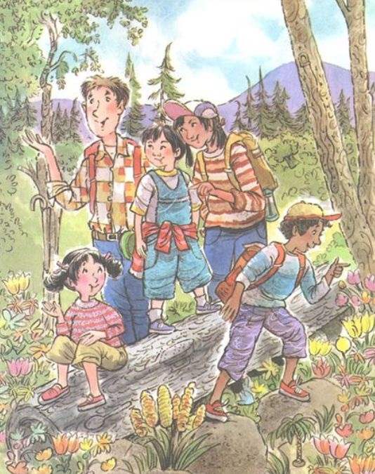 Сред гората се разхождат петима приятели, но никой не забелязва лимона, скрит на пода. Това е класическа визуална загадка, където ключът е да промените начина, по който сканирате изображението – не търсете ярък жълт плод, а нещо, което се слива с формата и текстурата на засъхалите листа.