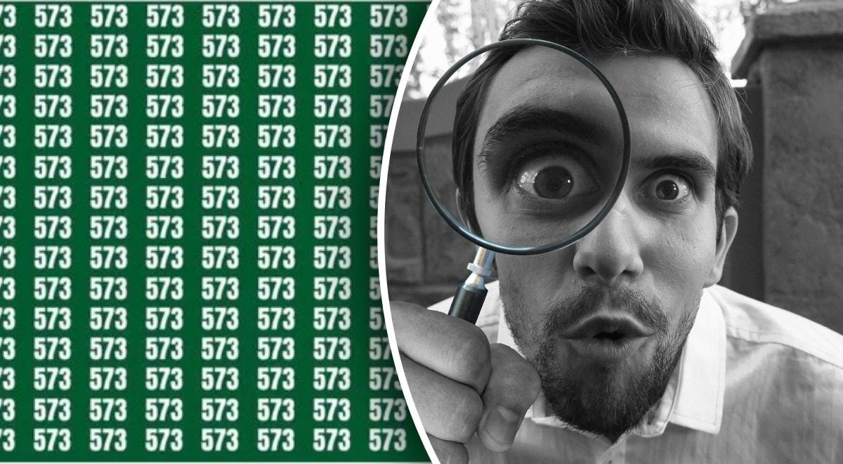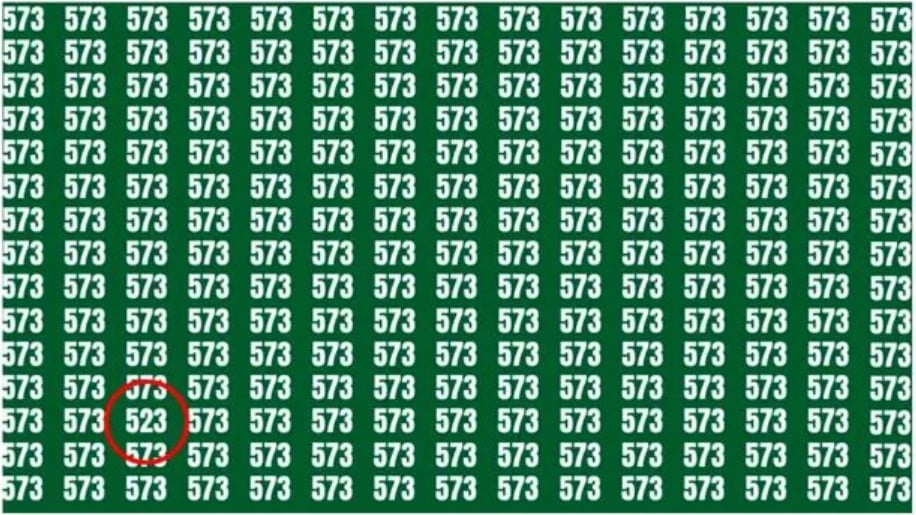 В море от повтарящи се числа 573 се крие едно-единствено число 523. Задачата е да го откриете за 18 секунди, като ключът е в промяната на перспективата и внимателното сканиране на изображението ред по ред.