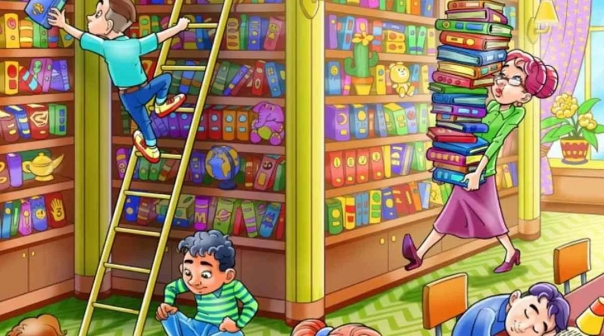 Представете си, че сте в стара, уютна библиотека. Рафтовете са пълни до таван с книги, деца учат и играят, а библиотекарка подрежда нови заглавия. Вашата задача е да откриете електрическа крушка, скрита някъде в тази детайлна илюстрация, и то само за 11 секунди. Звучи невъзможно? Много хора се подвеждат, търсейки я на тавана или в ръцете на хората, но истината е по-хитра. Това е тест не само за острота на зрението, но и за логика и разбиране на контекста.