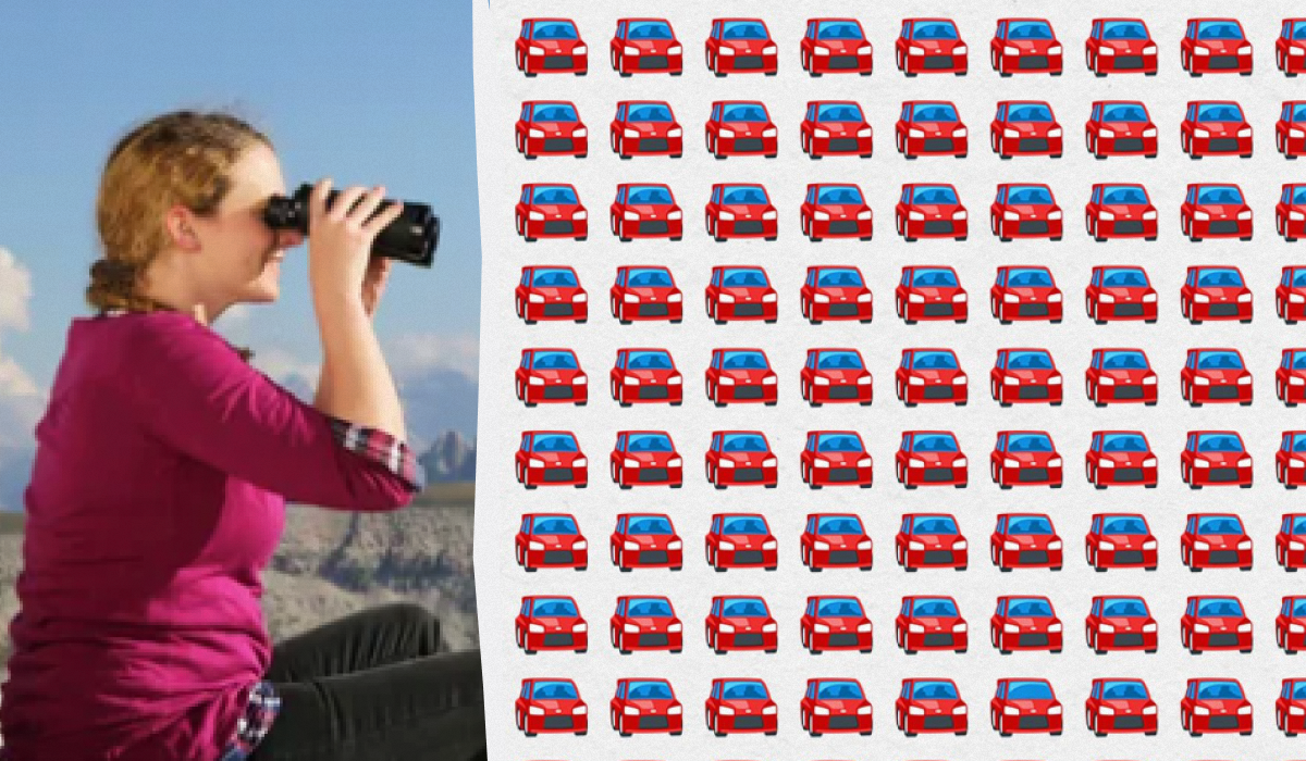 Погледнете изображението. Виждате редове от червени седани. На пръв поглед всичко е симетрично и еднообразно. Мозъкът ви може да се опита да ви убеди, че няма разлика. Но тя съществува. Не се разсейвайте от цялостната картина. Започнете да сканирате методично.