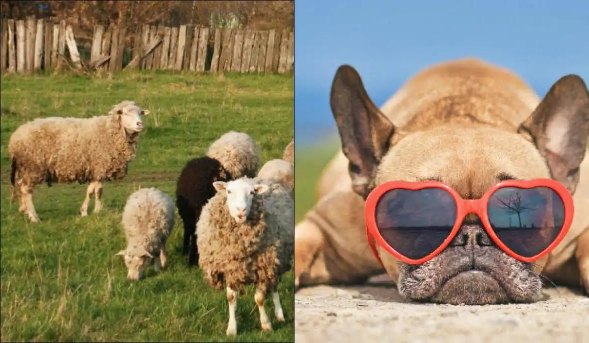 Сред стадо от черни и бели овце се е промъкнало едно куче. Задачата е да го откриете за по-малко от 10 секунди, без да се разсейвате от броенето на животните. Ключът е в разликата в формата и позицията, а не в цвета.