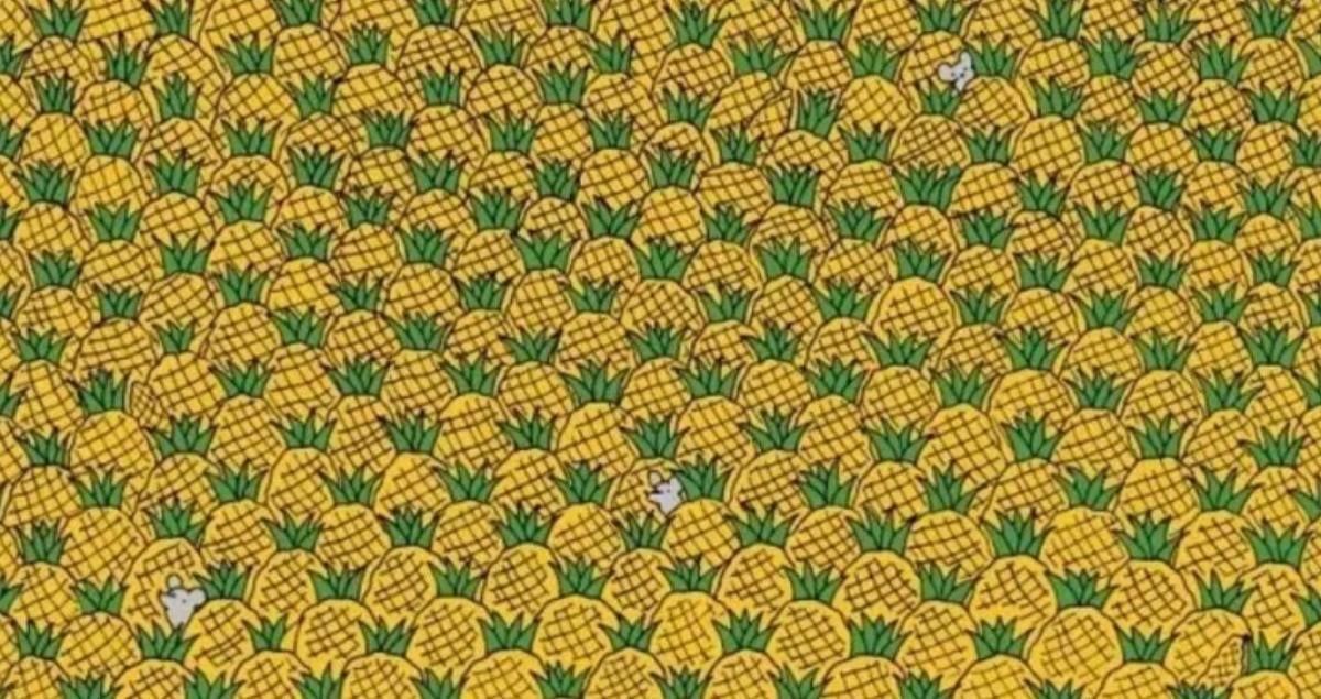Сред море от ананаси се крият три кочана царевица. Вашата задача е да ги откриете за 10 секунди! Това е тест за внимателност и бързо възприятие, където ключът е да не се подвеждате от повтарящия се паттерн.
