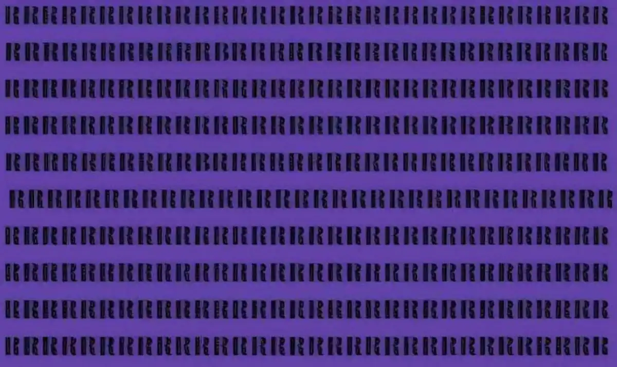 Този визуален пъзел проверява вашето внимание и скорост: сред море от букви „R“ се крият две букви „B“. Уловката е, че те са почти идентични на останалите, но една малка детайлна разлика ги издава. Фокусът е в това да не се подвеждате от очевидното.