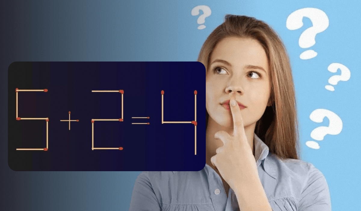 Пред вас е класически пъзел с клечки: „5 + 2 = 4“. Уравнението очевидно не е вярно. Вашата задача е да преместите само една клечка, за да получите правилно равенство. Ключът е да мислите не за цифрите, а за знаците.