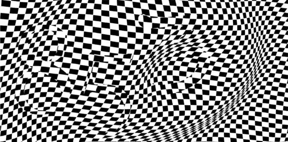 Представете си, че сте в стая с изкуство и пред вас виси тази любопитна картина. Изглежда като абстрактен черно-бял дизайн, извита шахматна дъска. Вашият приятел ви предизвиква: „Заложувам се, че не можеш да видиш числото тук за 10 секунди!“ Поглеждате отблизо, виждате само квадратчета и извити линии. Времето тича. Къде е числото? Уловката е, че то не е нарисувано с мастило, а е създадено от празнините и контраста между светлите и тъмните области. Вашият мозък трябва да групира тези области по различен начин, за да го разпознае.