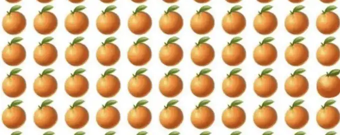 Този пъзел проверява вниманието и скоростта на възприятие: сред множеството еднакви портокали трябва да откриете един-единствен, който се различава по ориентация.