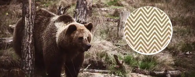 В тази оптична илюзия животно (мечка) е умело замаскирано сред шарки и контури на дървета. Ключът е да промените фокуса си и да търсите не отделни детайли, а.