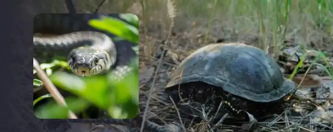 На тази снимка, освен костенурката, се крие и змия, която перфектно се слива с околната среда. Задачата е да я откриете за 10 секунди. Ключът е да не...
