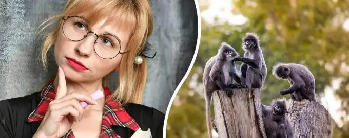 Три маймуни са в стая с различни предмети, но въпросът „Кой е най-интелигентният примат?“ крие уловка, която изисква да излезеш извън рамките на картинката.