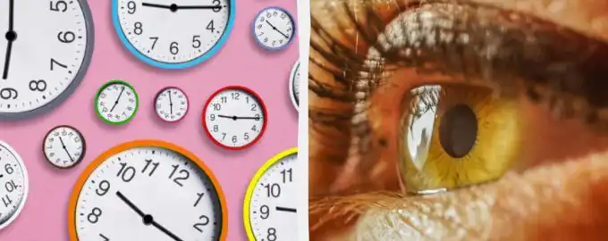 Това е класическа задача за внимателност и бързо сканиране. Сред десетки еднакви часовници, показващи 9:15, се крие един, който показва различно време.