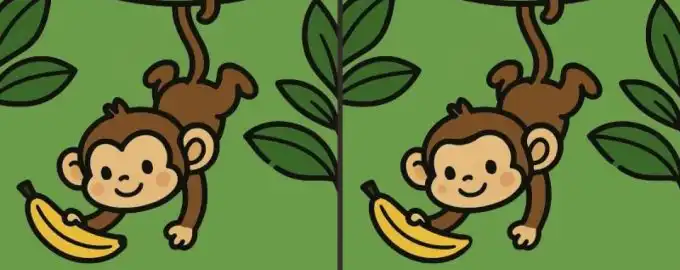 Този класически пъзел „Намери разликите“ те предизвиква да откриеш три несъответствия между две почти идентични снимки на маймуна на дърво.
