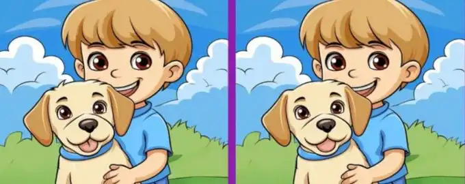 Този класически пъзел „Намери разликите“ поставя на изпитание вашето внимание към детайли. Две на пръв поглед еднакви сцени с момче и куче