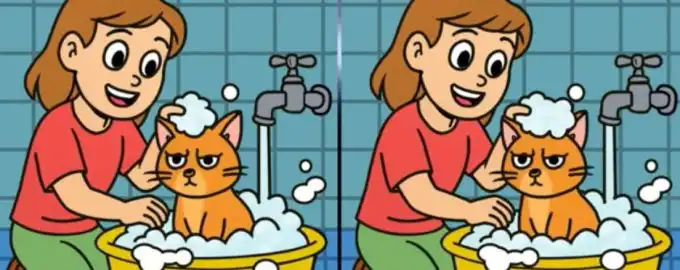 Този класически пъзел „Намери разликите“ те предизвиква да откриеш три несъответствия между две на пръв поглед еднакви идилични сцени с момиче и котка.