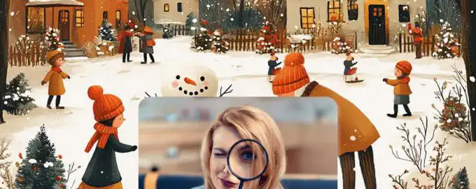 В заснежената гора, сред играещите деца, се крие добре замаскиран северен елен. Вашата задача е да го откриете за рекордно време, като се доверите на вниманието си и.