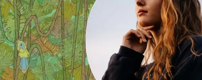 Това е класическа тестова задача за внимание и зрително възприятие: в гъстата зеленина на джунглата се крие змия, която се слива с околността.