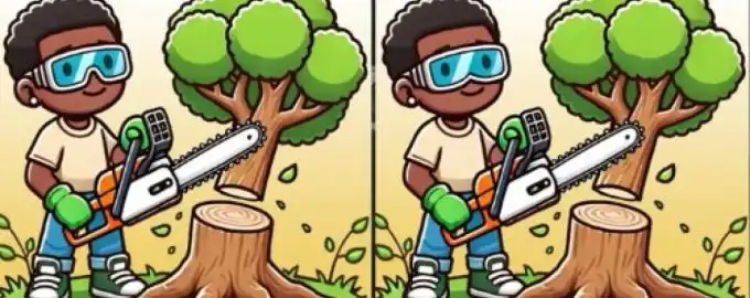 Този пъзел проверява остротата на зрението и скоростта на възприятие: в две на пръв поглед еднакви снимки на дървосекач са скрити три разлики, които трябва