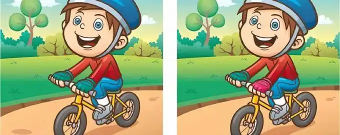 Този пъзел с намиране на разликите поставя вашата внимателност и скорост на изпитание: в две на пръв поглед еднакви снимки на момче с велосипед са скрити
