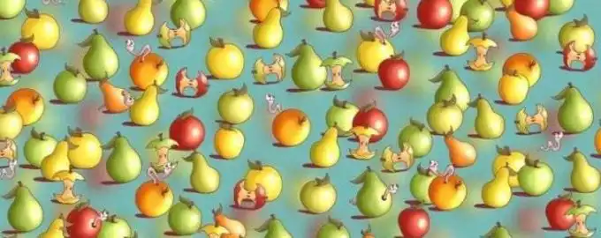 Това е класически тест за внимателност и бързо възприятие: сред море от червени ябълки и зелени круши се е промъкнал един-единствен жълт лимон.